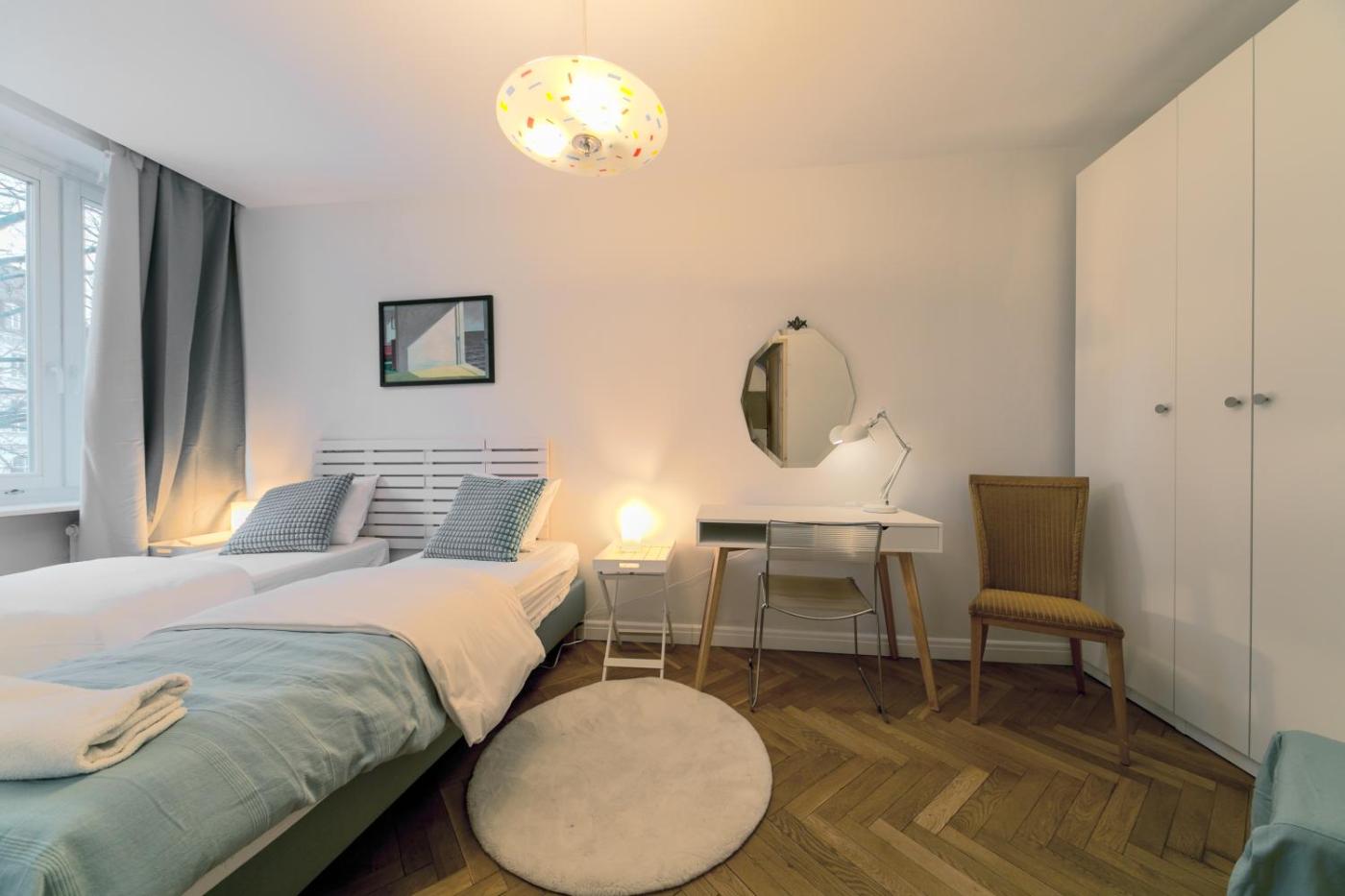 Apartament z 2 sypialniami. Guests can make meals in the kitchenette that is fitted with a stovetop, a refrigerator, a dishwasher and kitchenware. The apartment offers a flat-screen TV with streaming services, a washing machine, a tea and coffee maker, a seating area as well as city views. The unit has 4 beds. Apartament - 6 osobowy. Powierzchnia pokoju ok.: 55 mkw.